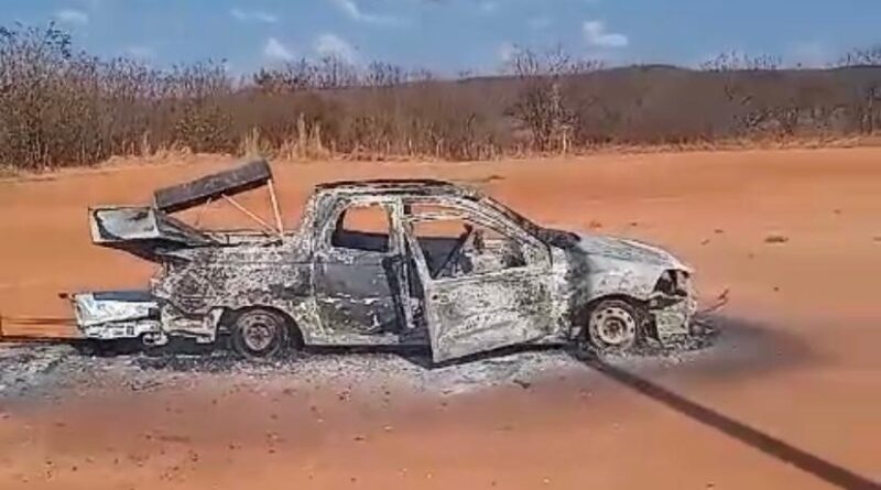 Carro é consumido pelo fogo no distrito de Riacho Verde; Polícia Militar investiga as causas