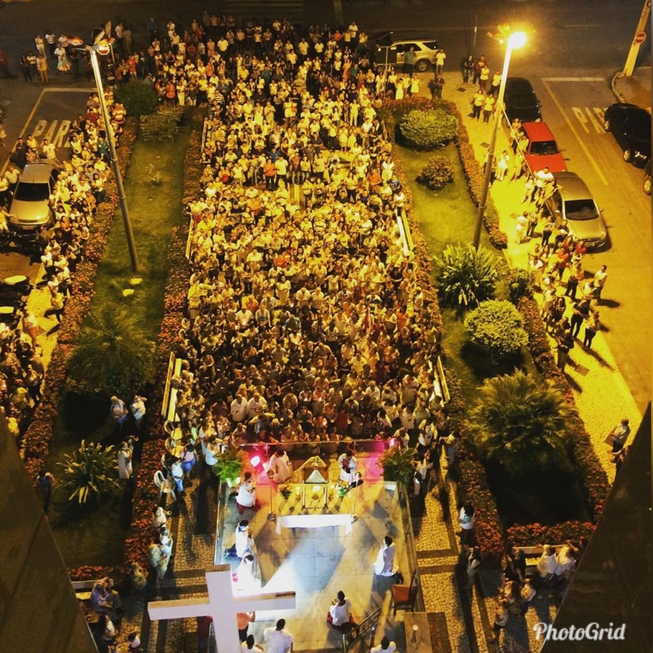 O Monsenhor Mota, com o santíssimo, acompanhou toda a procissão junto de uma multidão que com fé, renovaram as suas forças em Jesus Cristo.