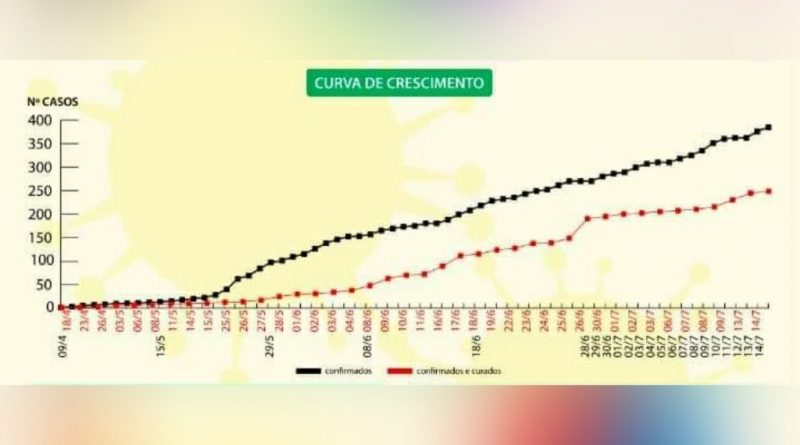 Agora são 385 casos confirmados da doença do novo coronavírus em todo o município, onde 127 pessoas estão em tratamento, 247 pessoas estão recuperadas e 11 pessoas morreram.