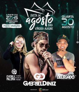 Gabriel Diniz é atração nacional que fará o show de encerramento da Festa de Agosto, em Várzea Alegre, nesta quarta-feira, dia 30, no Parque Cívico São Raimundo Nonato, numa festa gratuita contratada pela Prefeitura da cidade.