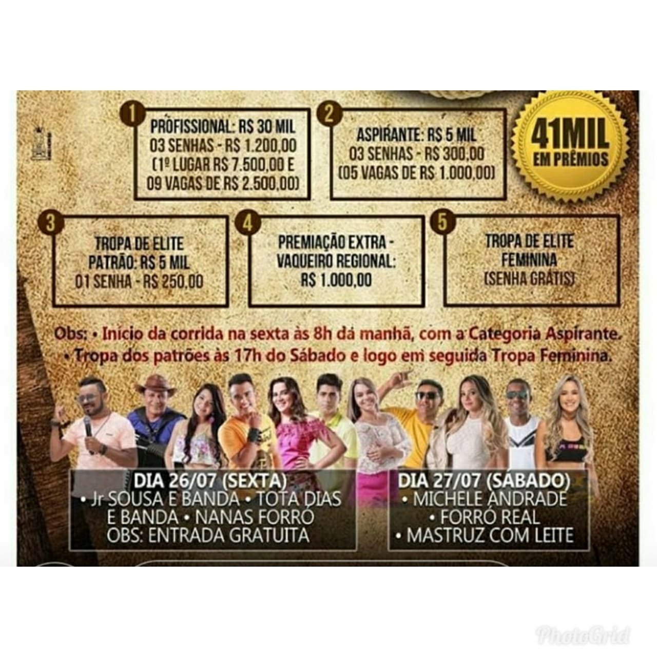 Já no dia 27, haverá Michele Andrade, Forró Real e Mastruz com Leite, com valor da entrada a ser definido.