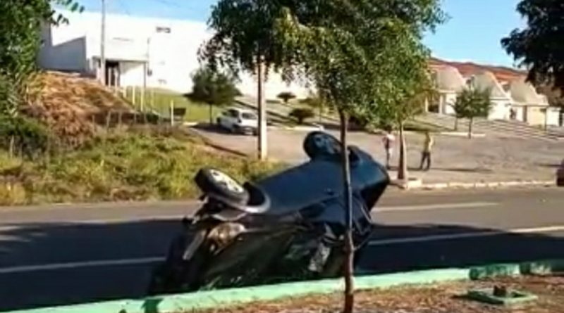 Motorista capota carro após desviar de motociclista que vinha em sua direção