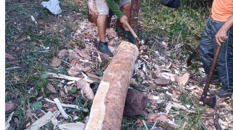Foi cortado na manhã deste domingo, 13, o pau da bandeira para ser usado na festa do padroeiro São Raimundo Nonato, em Várzea Alegre. O lenho tem 15 metros de comprimento e foi cortado na mata no sítio Roçado de Dentro, zona rural.